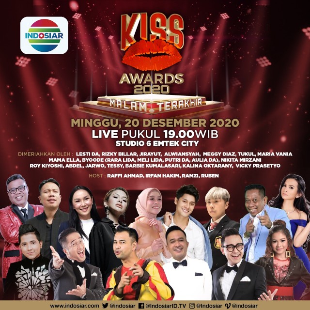 Panggung “Kiss Awards 2020 Malam Terakhir” yang disiarkan secara LIVE sejak pukul 19.00 WIB menghadirkan sederet artis-artis penuh sensasi diantaranya Nikita Mirzani, Roy Kiyoshi, Barbie Kumalasari, Vicky Prasetyo, Kalina Octarany serta pasangan yang begitu mencuri perhatian netizen, LESLAR (Lesti DA dan Rizky Billar).