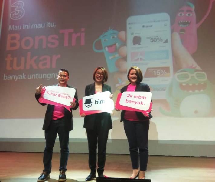 Provider 3 Indonesia (3), meluncurkan program 2x Lebih Banyak dan melakukan pembaharuan program loyalty BonsTri Point dalam rangka memberikan komitmen konsisten untuk membantu anal muda Indonesia dengan gaya hidup digital tinggi dalam mewujudkan ambisinya dengan kemudahan jaringan internetnya. Melalui inovasi yang dilakukan, 3 Indonesia kembali mengukuhkan posisinya sebagai salah satu digital lifestyle provider terdepan di Indonesia.