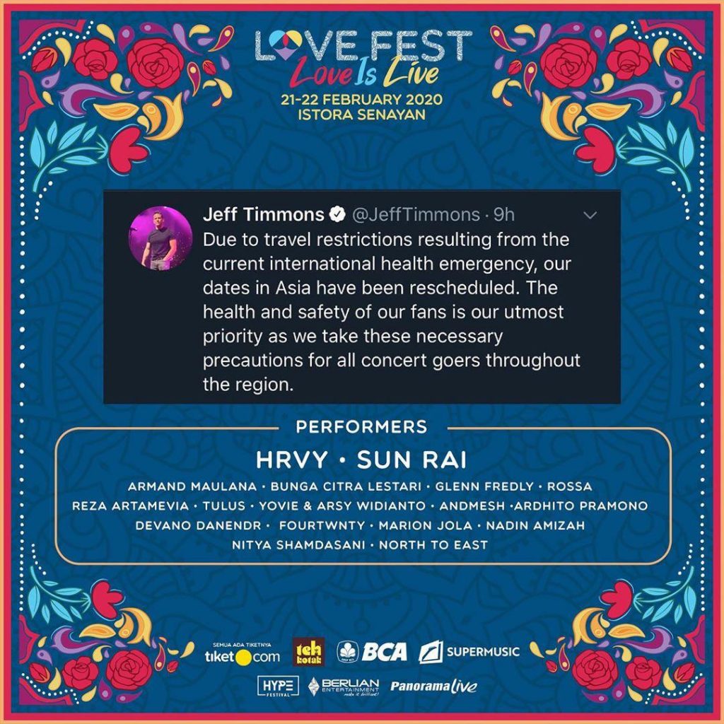 Tapi jangan takut #SobatFeeling, LOVE FEST 2020 will go on dengan deretan penampilan terbaik dari HRVY, Sun Rai, Rossa, Nadin Amizah, Andmesh, Reza Artamevia.