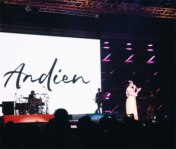 Andien menjad ipembuka dalam acara LAFFestival di panggung “Love Area” (10/2). Dengan membawakan Album Metamorfosa, Andien sukses menghibur penonton yang hadir. Para penonton asyik menikmati alunan lagu yang dibawakan Andien bersama bandnya.