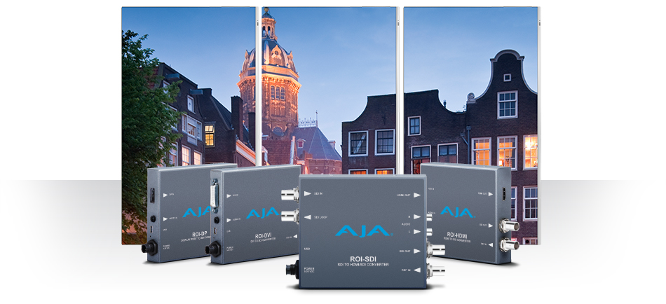 Sejak tahun 1993, AJA Video telah menjadi produsen interface video, converter, solusi perekaman video digital dan kamera profesional terkemuka yang mengupayakan kualitas tinggi terhadap beragam produk yang dihasilkan. Memasuki tahun 2017, AJA merilis produk anyar, yakni converter AJA ROI-SDI. Model ini merupakan mini converter portabel yang menyediakan sebuah masukan (input) 3G-SDI dan 3G-SDI simultan, serta keluaran (output) HDMI, plus memfasilitasi pemrosesan skala (scaling) gambar berkualitas prima, selain menambahkan Region of Interest (alias ROI yang merupakan salah satu fitur yang tersedia dalam JPEG2000 yang memungkinkan dilakukannya pengkodean secara berbeda pada area tertentu dari citra digital, sehingga mempunyai kualitas yang lebih baik dari area sekitarnya. Fitur ini menjadi sangat penting, bila terdapat bagian tertentu dari citra digital yang dirasakan lebih penting dari bagian yang lainnya) dan rotasi gambar pada sebuah rentang resolusi dan frame rate.