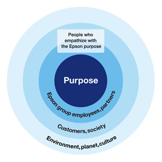 Tujuan perusahaan tidak dapat diwujudkan oleh karyawan Epson saja. Pelanggan, mitra, dan masyarakat harus berempati dan berbagi tujuan kami. Epson berusaha untuk berkontribusi pada pelestarian lingkungan dan pengembangan budaya dan untuk memperkaya kehidupan dan menciptakan dunia yang lebih baik.
