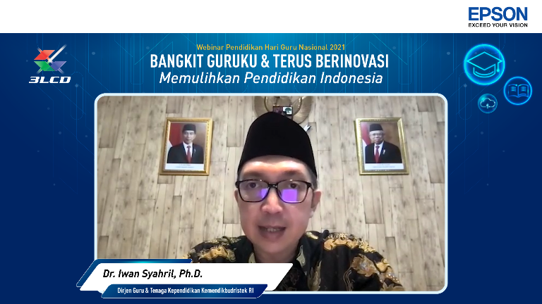 Melalui kata sambutan dan pidato pembukanya, Dr. Iwan Syahril, Ph.D – Direktur Jenderal Guru dan Tenaga Kependidikan, Kementrian Pendidikan, Budaya, Riset dan Teknologi, menyampaikan apresiasi kepada PT Epson Indonesia bersama 17 Asosiasi dan Komunitas Guru Indonesia yang berkolaborasi melalui kegiatan Webinar Pendidikan Nasional ini sebagai bukti nyata keperdulian PT Epson Indonesia dalam membantu pulihnya Pendidikan Indonesia.