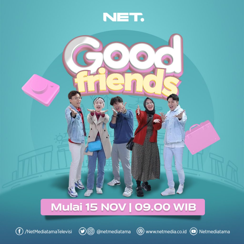 Kisah perjalanan kelima figur milenial Indonesia-Korea Selatan dalam “Good Friends” tersebut tayang di NET. mulai 15 November 2020, setiap hari Minggu, pukul 09.00 WIB bersama lima host: Jang Han-Sol, Han Yoo Ra, Rafael Tan, Bianca Kartika, dan Kevin Hermanto.
