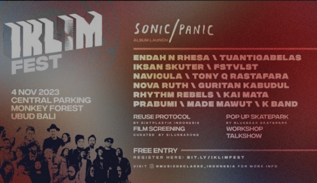 Nov 02, 2023 broadcastmagz Film & Music, What's On Comments Off on IKLIM Fest: Festival Sadar Iklim dan Perayaan Peluncuran Album Kompilasi ‘sonic/panic’ Siap Digelar di Bali