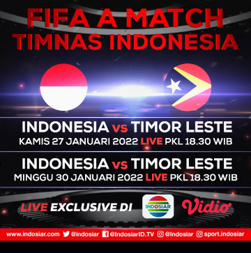 Timnas U-23 akan menghadapi perlawanan Timor Leste U-23 di dua pertandingan berbeda di hari Kamis, 27 Januari 2022 dan Minggu, 30 Januari 2022 pukul 18.30 WIB LIVE di Indosiar serta Vidio.