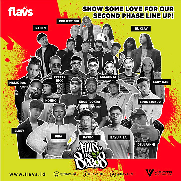 Sebelumnya FLAVS telah mengumumkan sejumlah nama-nama pada pengumuman FLAVS fase pertama, diantaranya adalah; Asep Balon X Fiksi X Udin And Friend, Batik Tribe, Cantika Abigail, Dhira Bongs, DPMB, EvilDope, Gunz, Keilan Boi, Kojek Rap Betawi, Laze, Mario Zwinkle, M. E Voices, Nartok, Rahmania Astrini dan Tuan Tigabelas.