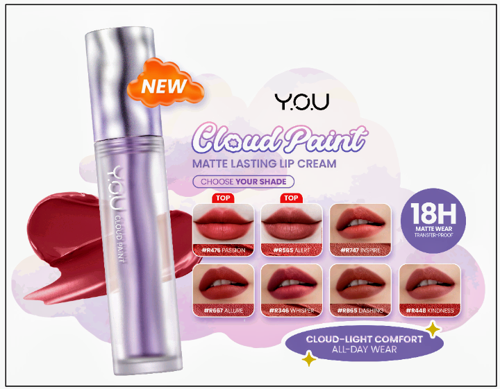 Makeup dan skincare kini tidak perlu dipisahkan, kehadiran Y.O.U Cloud Paint Matte Lasting Lip Cream menjadi bukti penanda era baru di mana produk lip matte bukan hanya soal warna dan ketahanan, tetapi juga soal kenyamanan dan manfaat jangka panjang. Y.O.U Cloud Paint Matte Lasting Lip Cream kini dapat ditemukan di Y.O.U Official Store di Shopee dan offline store kecantikan kesayangan Anda. Yuk, checkout sebelum kehabisan.