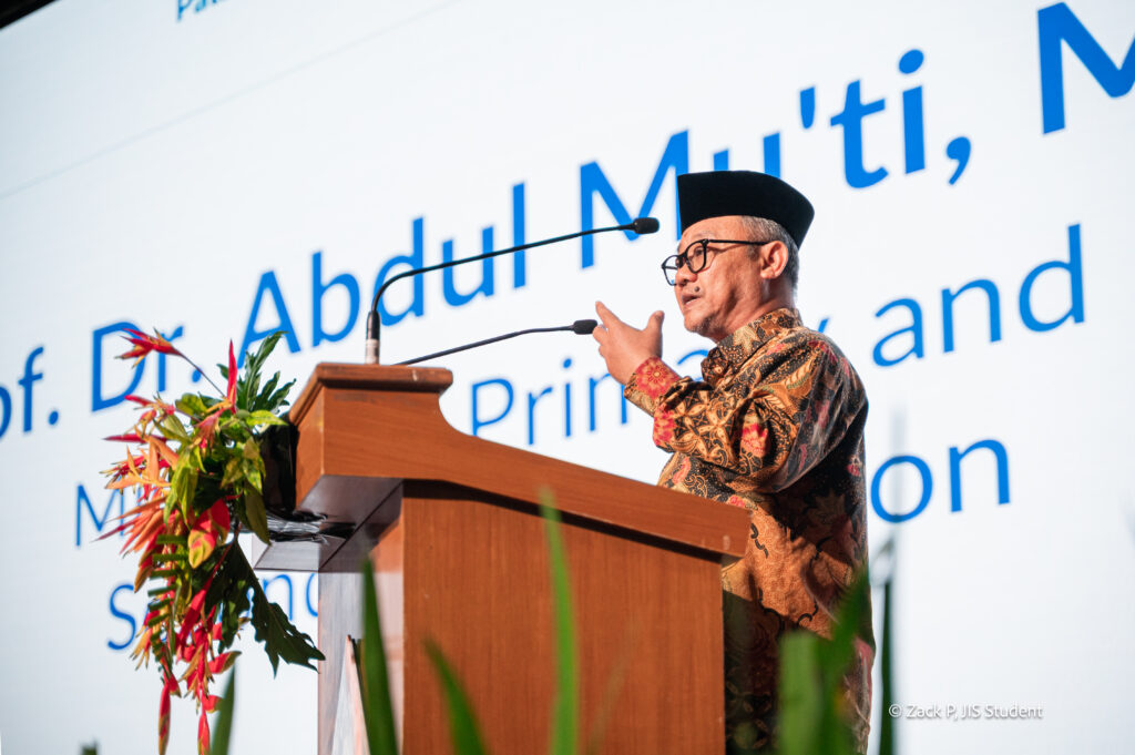 Dalam kesempatan yang sama, Menteri Pendidikan Dasar dan Menengah Republik Indonesia, Prof. Dr. Abdul Mu’ti, M.Ed. memberikan apresiasi pada peresmian gedung JIS Pattimura Elementary, 23 September 2025.