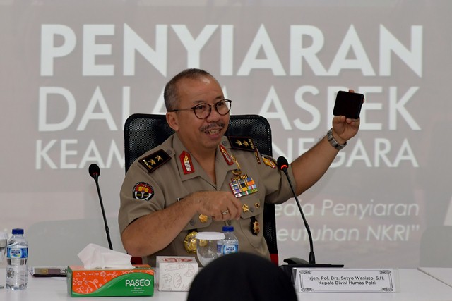 Kepala Divisi Hubungan Masyrakat (Humas) Markas Besar (Mabes) Kepolisian Republik Indonesia (Polri), Setyo Wasisto, menjadi pengisi materi dalam Sekolah P3SPS KPI Angkatan XXXII yang dimulai hari ini, Selasa (16/10/2018) di Kantor Komisi Penyiaran Indonesia (KPI) Pusat, Jakarta Pusat. Jenderal Polisi bintang dua ini menyampaikan materi tentang penyiaran dalam aspek keamanan negara.