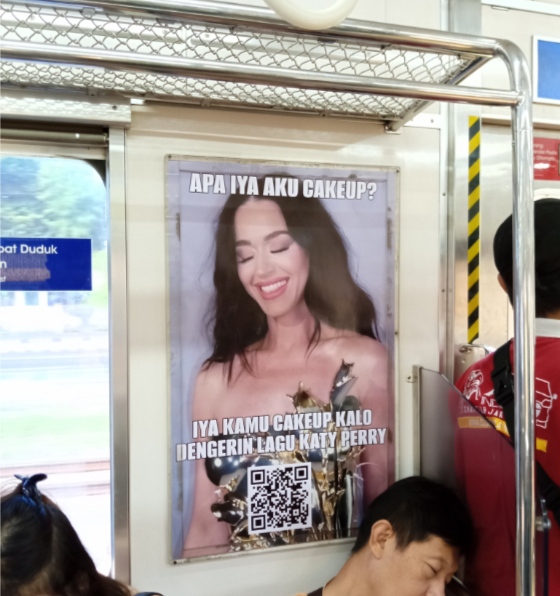 Katy Perry mengejutkan fans Indonesia dengan melakukan promo di KRL Commuter Line Rute Jabodetabek. Mempromosikan lagu baru nya “Woman’s World”, berbagai macam foto meme lucu Katy Perry terpasang di dinding gerbong kereta. Ini adalah pertama kalinya penyanyi global superstar mempromosikan lagu baru di Indonesia dengan cara yang unik, lucu, dan sangat spot on untuk pasar Indonesia.