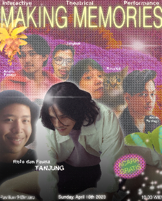 Bersama alunan lagu bernuansa psychedelic pop dan alternative rock dari TANJUNG dan iringan musik yang catchy dan absurd dari Refo dan Fauna, pertunjukan musik teater interaktif ‘Making Memories’ siap mendobrak batas-batas yang biasa ditemukan dalam penampilan musik dan seni teater. Masih menyajikan plot yang sama dengan cerita komik berseri yang diterbitkan di media sosial TANJUNG selama masa promosi ‘Making Memories’, Refo dan Fauna dan TANJUNG akan ‘berduet’ sebagai co-directors mengimplementasikan cerita tersebut menjadi sebuah lakon. Turut dimeriahkan oleh Rendy Pandugo, Rasyiqa, Andre Panaga, dan Jangbok, dengan gaya ringan dan segar, sungguh sangat sayang untuk dilewatkan!