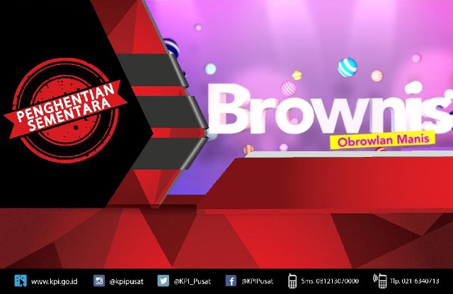 Lalu, KPI menemukan pelanggaran lain pada tayangan “Brownis” tanggal 13 Agustus 2019 berupa adegan seorang pria menoyor kepala temannya. Pada “Brownis” tanggal 13 Agustus 2019, KPI menemukan tayangan yang membahas kehidupan pribadi (Dewi Sanca) yang hamil di luar nikah. Pada tanggal 15 Agustus 2019 program tersebut menampilkan adegan seorang pria yang berkata, “..kakinya pendek sih jadi ngga nyampe-nyampe..”. Dan yang terakhir, pada tanggal 22 Agustus 2019, KPI mendapati “Brownis” menampilkan adegan dua orang wanita (Duo Serigala) yang menari dengan menggoyangkan bagian payudara.