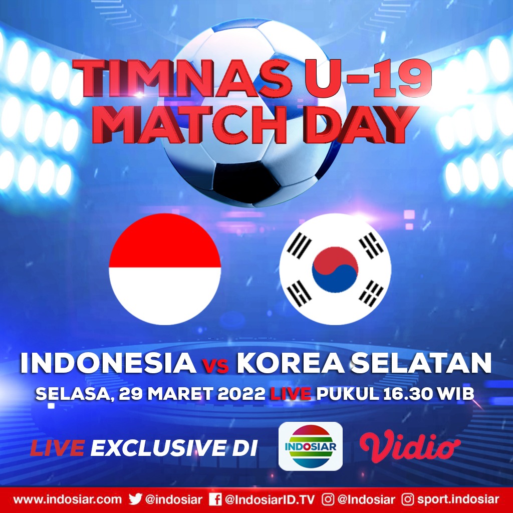 Mar 26, 2022 broadcastmagz What's On Comments Off on Laga TIMNAS U-19 VS Korea Selatan Tayang Di Indosiar