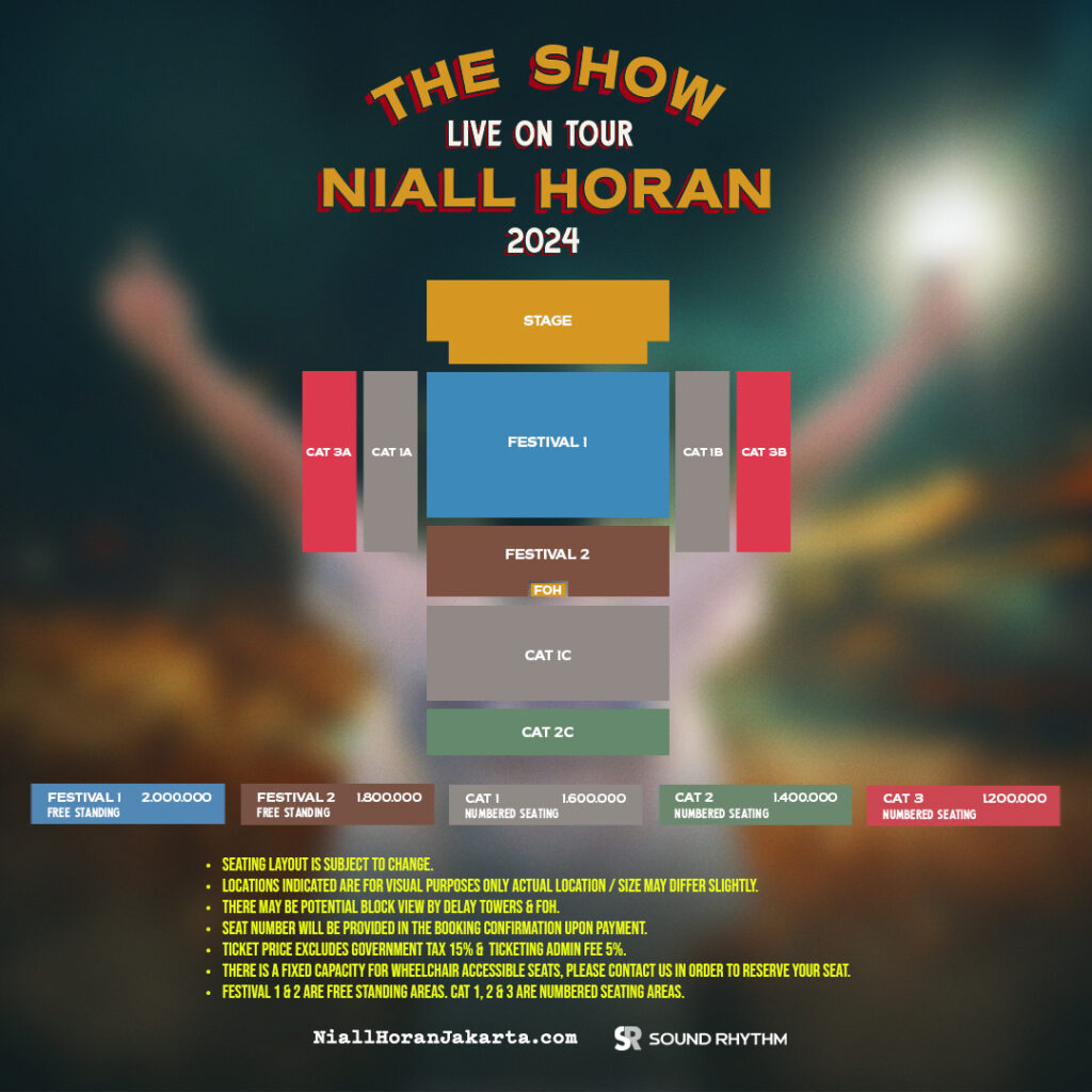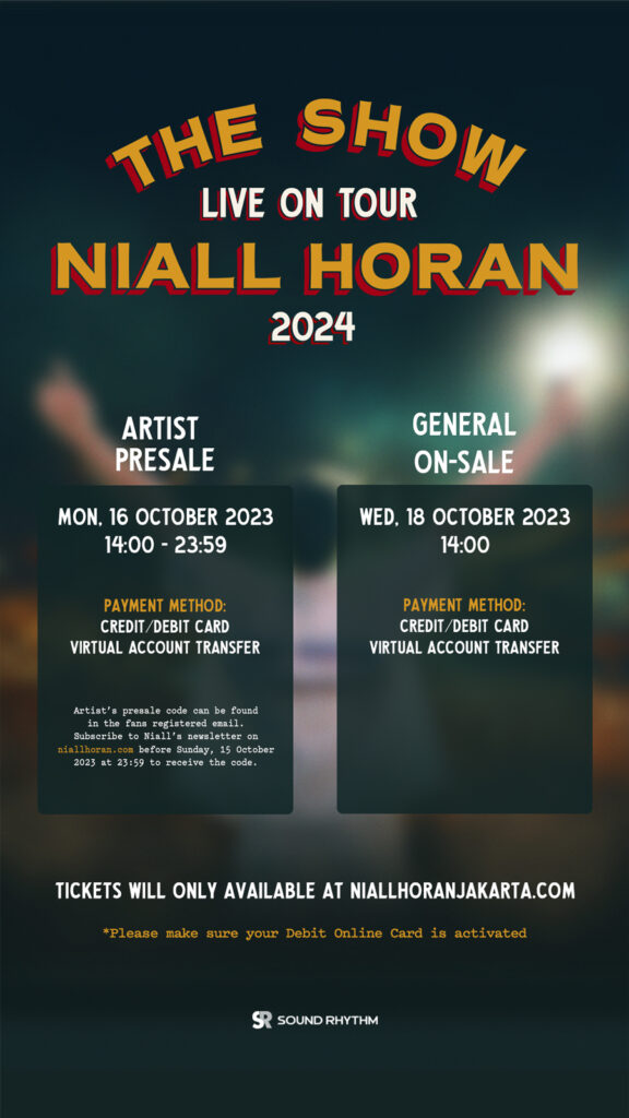 Penjualan tiket untuk umum tersedia pada hari Rabu, 18 Oktober 2023 mulai pukul 14.00 WIB secara eksklusif hanya di www.NiallHoranJakarta.com