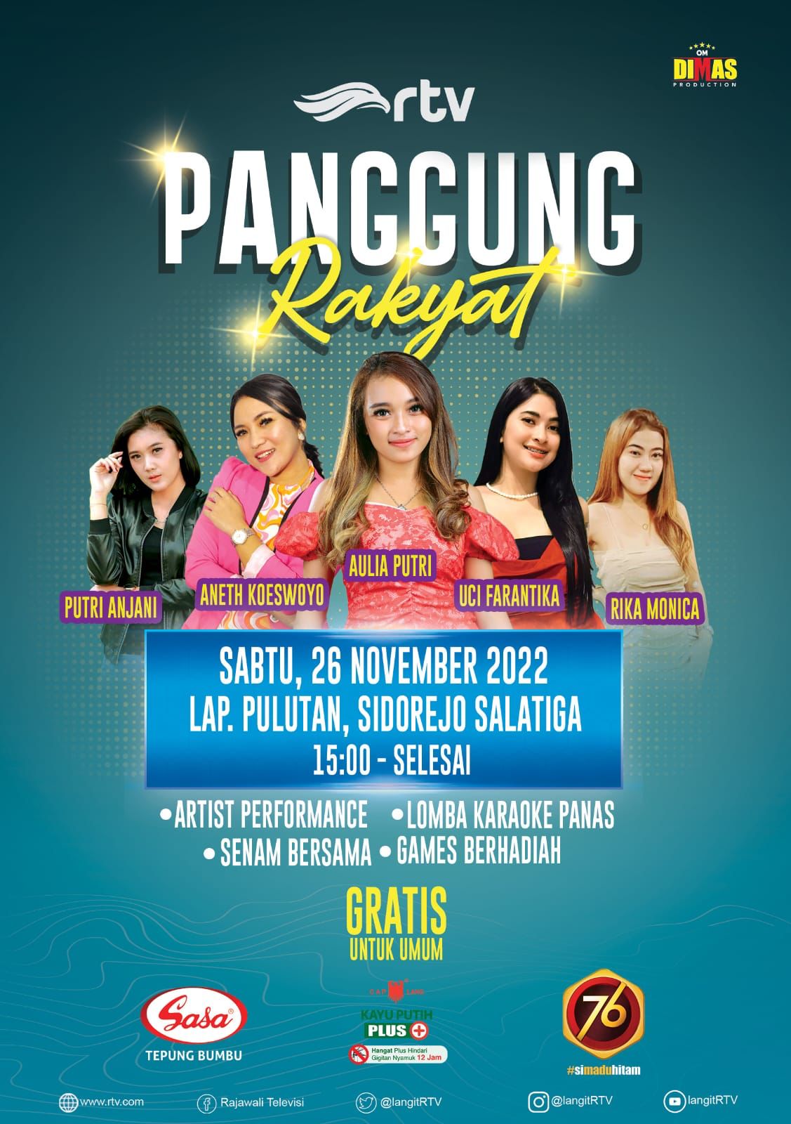 Acara ini dikemas dengan konsep panggung rakyat berkeliling ke daerah-daerah agar RTV dapat menyapa langsung dan berinteraksi dengan pemirsa setianya. Panggung Rakyat RTV kali ini akan berkunjung ke kota Salatiga, tepatnya di lapangan Pulutan, Sidorejo, Salatiga pada hari Sabtu, 26 November 2022.