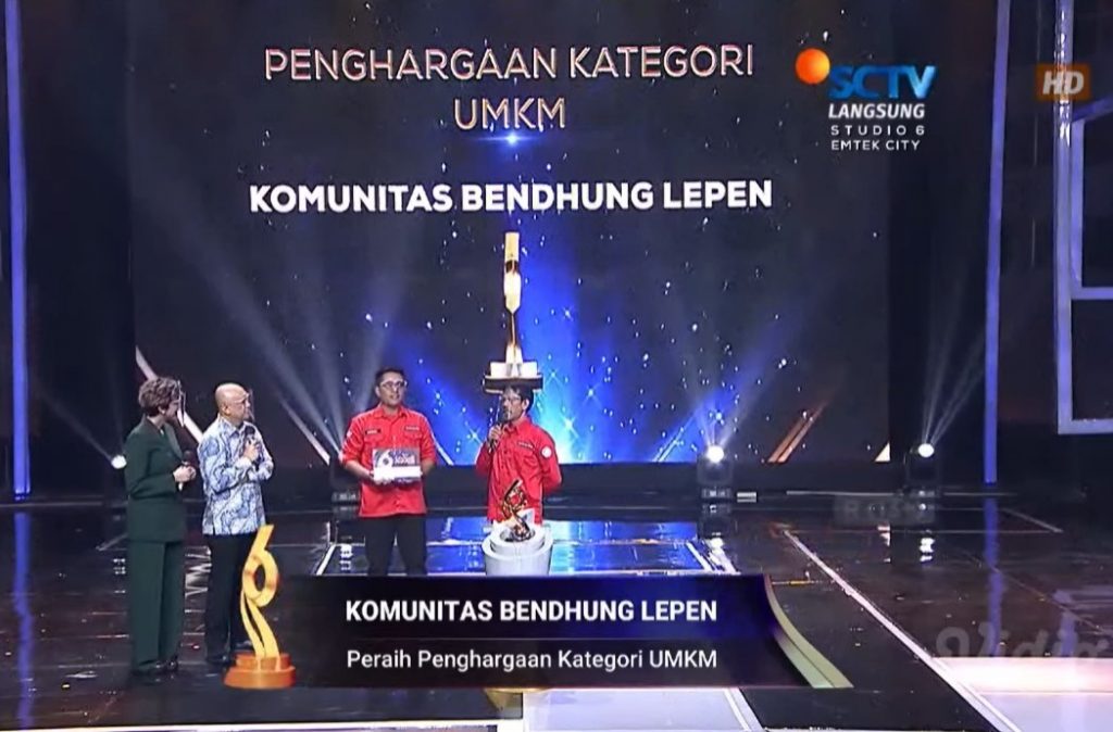 Bapak Teten Masduki (Menteri Koperasi dan UMKM RI) berkesempatan untuk hadir di Liputan 6 Awards 2021 dan menganugerahkan langsung penghargaan dari Kategori UMKM kepada Komunitas Bendhung Lepen.