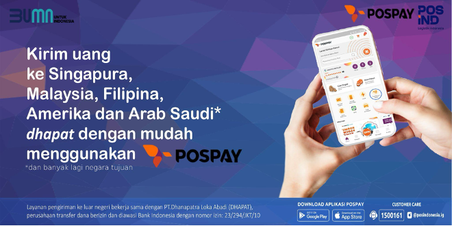 “Tidak hanya kirim ke luar negeri, pengguna Pospay juga dapat mengirim uang secara domestik ke pengguna Pospay lain, dompet digital atau ke bank mana pun di Indonesia. Pospay melengkapi jaringan layanan dan titik layanan (Point of Sales) PT Pos Indonesia (Persero) yang telah tersedia dalam bentuk Kantor Pos, Agen Pos, Mobile Postal Service (MPS) di seluruh Indonesia, Pospay menyediakan layanan yang benar-benar terintegrasi dan luas jangkauannya,” tutup Zuhed.