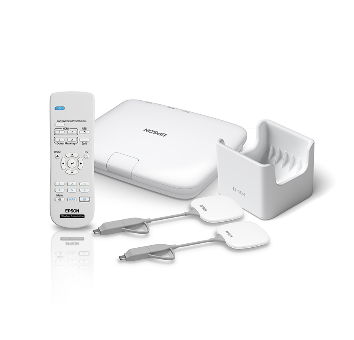 Sudut yang bulat dari pemancar system presentasi lebih mudah dan lebih menarik bagi mata manusia. Indikator LED yang jelas membantu pengguna Ketika perangkat berhasil terhubung, tanpa melalui troubleshooting yang melelahkan. Desain ini diadopsi untuk menurunkan hambatan bagi pengguna pertama kali.