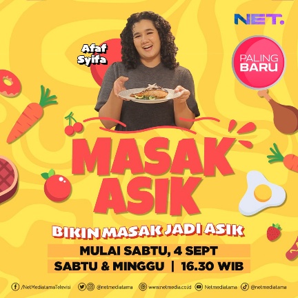 Sementara itu chef muda Syifa Hasan akan mengajak pemirsa NET “Masak Asik” pada kedua hari yang sama setiap pukul 16.30 WIB.