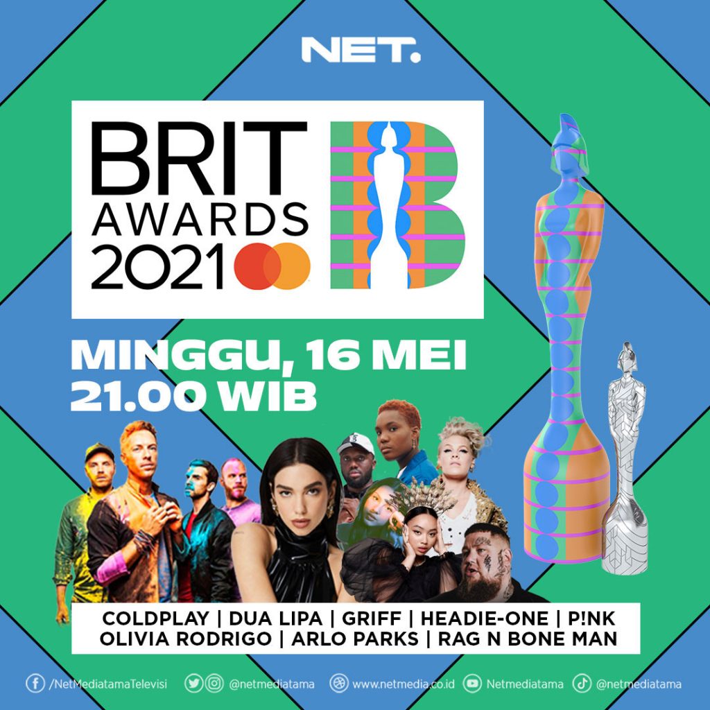 NET. juga akan menghadirkan pentas penghargaan musik internasional “Brit Awards 2021” pada hari Minggu, 16 Mei 2021 pukul 21.00 WIB.