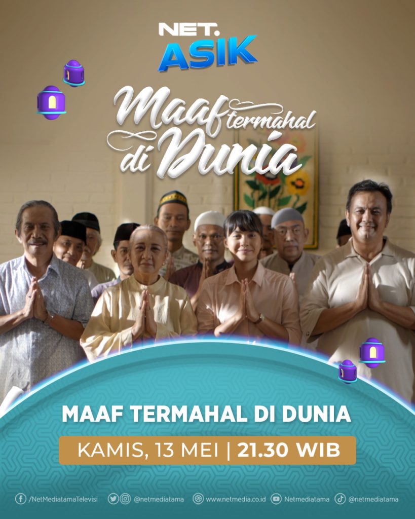 Film Televisi Spesial Lebaran NET. berjudul “Maaf Paling Mahal di Dunia” menghadirkan drama komedi inspiratif yang diperankan aktris muda pemeran Kartini, Rania Putrisari dan Lucky Perdana peraih nominasi pemeran pria terpuji Festival Film Bandung.