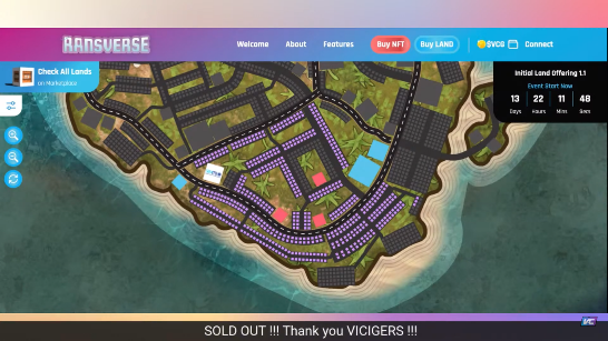 Total plot tanah di RansVerse adalah 24,000 land dan tersedia beberapa jenis yaitu single land, Neighborhood, Cluster, District, dan County. Pada ILO Tahap I ini, tercatat rekor sebanyak 546 lahan di RansVerse habis terjual hanya dalam waktu 35 menit. ILO RansVerse Tahap I itu dibuka sekitar pukul 22.05 WIB dan habis terjual pada pukul 22.40 WIB, dimana waktu mundur yang ditargetkan sebelumnya yaitu 14 hari.