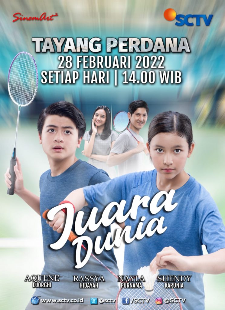 Saksikan kisah Aruna dalam menggapai mimpinya di ‘JUARA DUNIA’ mulai Minggu, 28 Februari 2022, tayang setiap hari pukul 14.00 WIB hanya di SCTV.