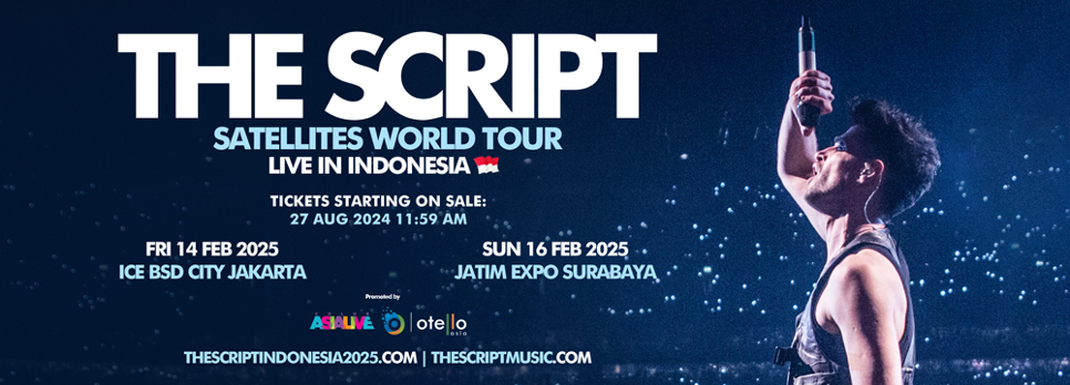 Penjualan tiket The Script Satellites World Tour di Jakarta & Surabaya mulai dijual pada hari Selasa, 27 Agustus 2024, pukul 11.59 WIB secara eksklusif di www.thescriptindonesia2025.com