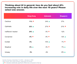 Edward Hutasoit, General Manager YouGov Indonesia, menjelaskan, “Survei ini menunjukkan bahwa masyarakat Indonesia optimistis terhadap peran AI dalam kehidupan mereka, dan juga termasuk yang paling nyaman dengan berbagai konten digital yang dihasilkan AI. Sikap terbuka ini memberikan peluang besar bagi pelaku bisnis, media, dan platform digital untuk menjangkau audiens yang digital-savvy dan berpikiran terbuka.”